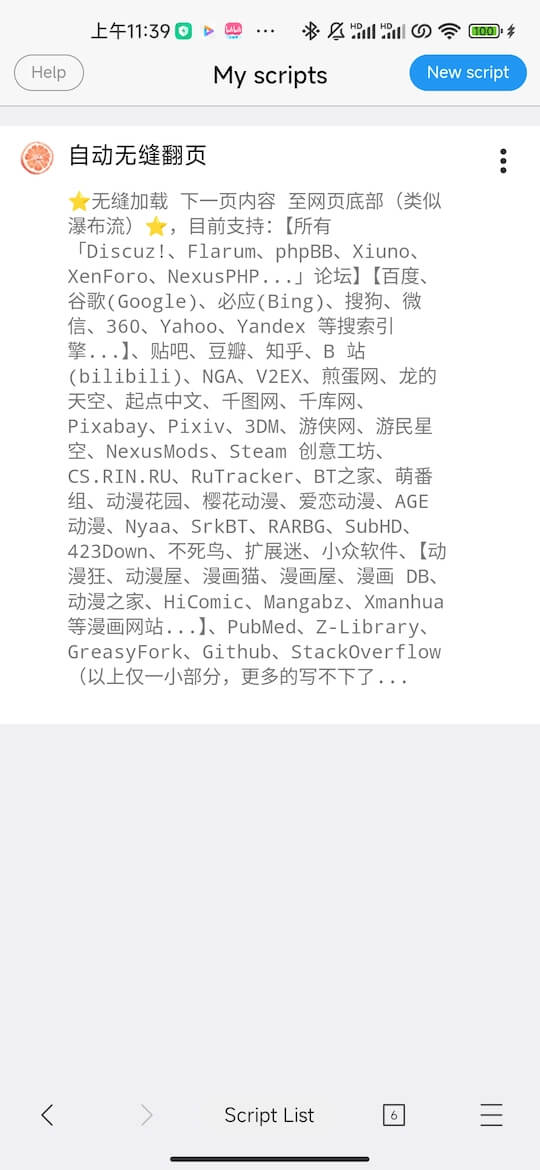 无缝加载 下一页内容 至网页底部(类似瀑布流)⭐,目前支持:【所有「Discuz!、Flarum、phpBB、Xiuno、XenForo、NexusPHP…」论坛】【百度、谷歌(Google)、必应(Bing)、搜狗、微信、360、Yahoo、Yandex 等搜索引擎…】、贴吧、豆瓣、知乎、B 站(bilibili)、NGA、V2EX、煎蛋网、龙的天空、起点中文、千图网、千库网、Pixabay、Pixiv、3DM、游侠网、游民星空、NexusMods、Steam 创意工坊、CS.RIN.RU、RuTracker、BT之家、萌番组、动漫花园、樱花动漫、爱恋动漫、AGE 动漫、Nyaa、SrkBT、RARBG、SubHD、423Down、不死鸟、扩展迷、小众软件、【动漫狂、动漫屋、漫画猫、漫画屋、漫画 DB、动漫之家、HiComic、Mangabz、Xmanhua 等漫画网站…】、PubMed、Z-Library、GreasyFork、Github、StackOverflow 。。。