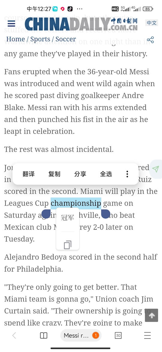 该脚本不仅支持中英对照翻译,而且可以支持选择单词文字进行翻译,可以替代X浏览器以前版本的即时翻译。